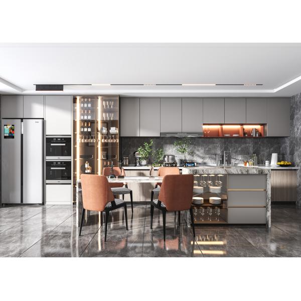 The door panel surface treatment options for the Modern Kitchen Cabinet include acrylic, lacquer, PVC membrane, and solid wood. These options allow you to choose the surface treatment that best suits your needs and preferences. Acrylic and lacquer provide a smooth and glossy finish while PVC membrane offers a variety of colors and designs. Solid wood is a classic choice that adds warmth and texture to your kitchen.