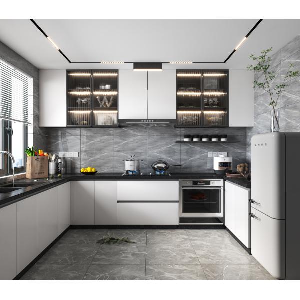 The Modern Kitchen Cabinet is made with a variety of door materials including MDF, particleboard, plywood, solid wood, and glass. These materials provide a range of options for homeowners to choose from and make it easy to customize the cabinet to their specific needs and preferences.