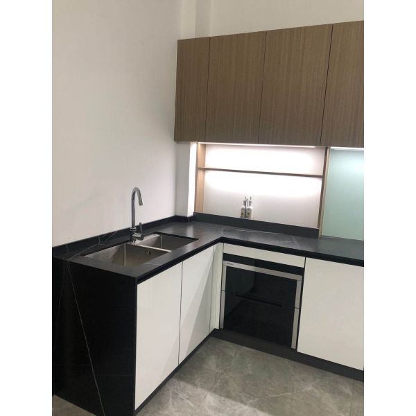 Choose from a range of door materials, including Melamine, Lacquer, UV, PET, and Solid wood. Our accessories include backsplash, drawer basket, drawer slide, faucet, handle, and knob. Additionally, we provide appliances such as Ranghood, Cooker, and Microwave to complete your kitchen.